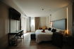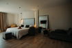 Living equipado con escritorio y chaise longe. Tv Hd con programación nacional e internacional, wifi gratuito, aire acondicionado, caja de seguridad, secador de cabello, ketlle eléctrica, cafetera nespresso, equipo de música, minibar, amplios ventanales.